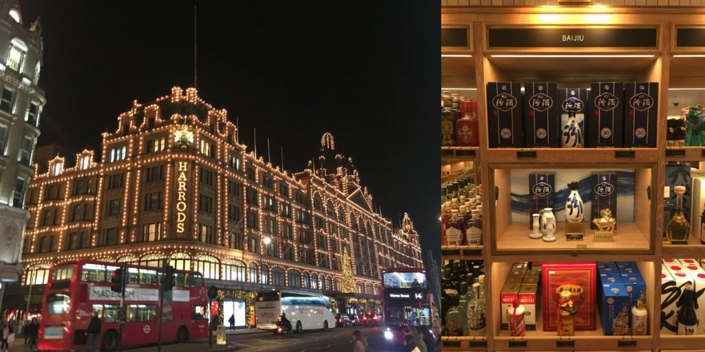 Fen Chiew is a type of Baijiu (literally white alcohol) which originated in Shanxi province and is personified by its dry, light taste. As of last month, Harrods are now stocking Xinghuacun Fenjiu Distillery’s famous signature Blue and White Porcelain bottle (displayed prominently between the Sake and Gin sections of Harrods’ basement wine and spirit range). The partnership was announced last month as part of a wider push by Chinese brands to promote baijiu to Western audiences. This push includes catering to consumers by promoting baijiu as an ideal cocktail base.