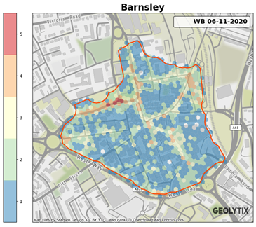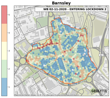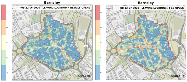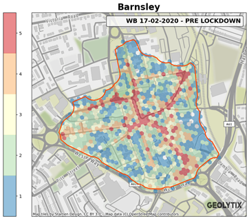 Geolytix have worked with Barnsley Council to understand the impact of events in 2020 on town centre activity levels, and will continue to do so to understand and measure the initiatives that are being put in place to ensure Barnsley comes back stronger. The use of anonymised mobile device activity from Unacast allows for regular measurement across place and time.