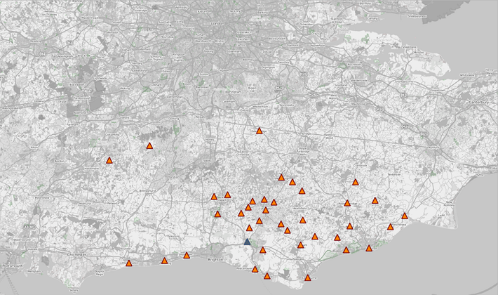 The reason I write this is because Bonfire Night was such a huge part of my childhood, and I was genuinely surprised when writing this blog that it’s a Sussex phenomenon. Due to COVID, the parades in 2020 were cancelled, and so this year I have a feeling they will be bigger and better. This will wreak havoc on the road networks however, especially around Lewes (marked with a blue triangle on the map above- created on QGIS).