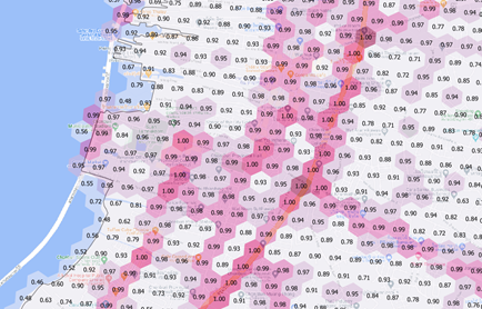 On a more granular level the data can be used as a proxy for footfall to support individual store investment decisions. The hex-grids in the example below are shaded based on the level of activity with the label indicating a Geolytix-derived score for each cell.