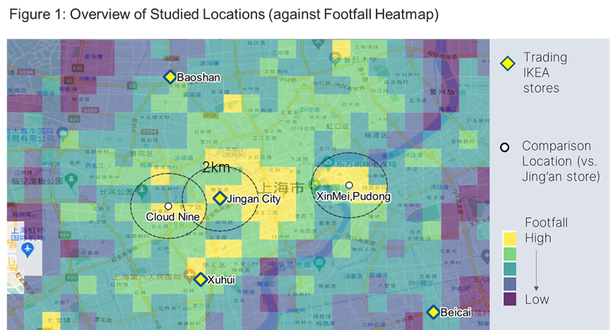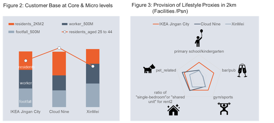 Interestingly, despite the similar quantity of customer base, the core catchment of Jing’an City store stands out with some remarkable features such as (ref. Figure 2 and Figure 3):