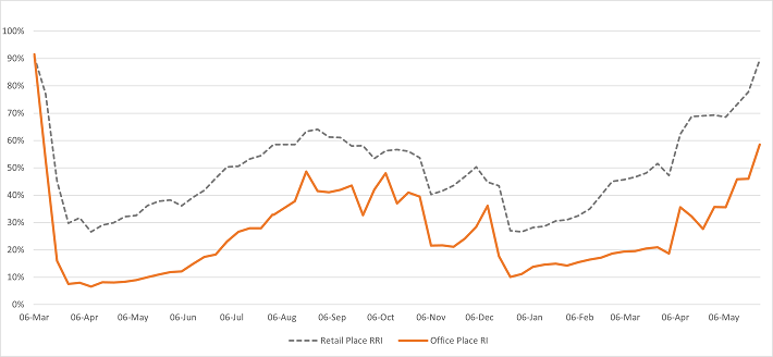 Through the last 15 months, we have been using mobility data and applying it within 8,000 of our Retail Place boundaries to produce a weekly read on activity levels across the UK.